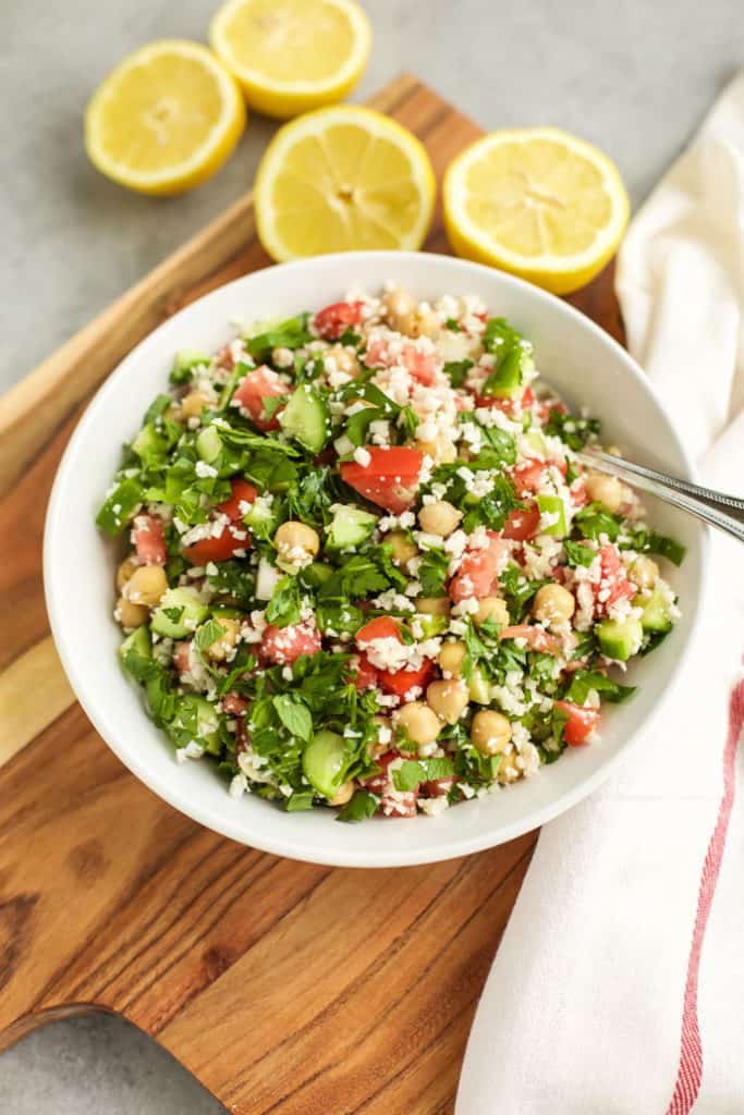 Tabbouleh is a family favourite! Love all the bright fresh flavours in this dish, and how you've swapped out the bulgar for cauliflower. Great way to sneak some extra veggies in the dish and lighten it up!