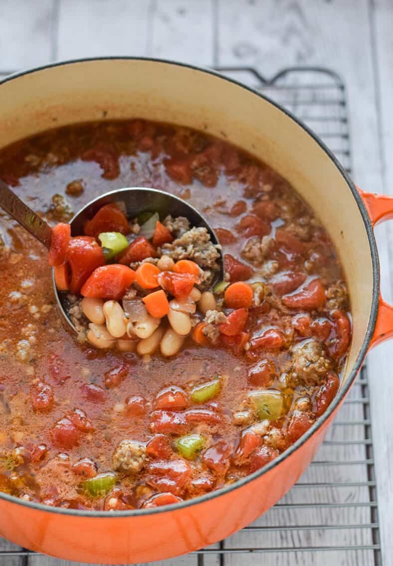 - Simple ingredients: With ingredients like sweet Italian sausage, cannellini beans, and a variety of veggies, this soup is made from pantry staples you likely already have on hand. It is a great way to use up those odds and ends in your fridge and pantry!