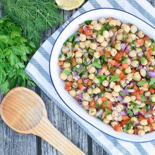 Let's just say I need a healthy salad at the ready. This Summer Chickpea Salad is great because it holds up in the fridge for several days and it packs well in a cooler or lunch bag. It has a super light dressing of olive oil and lemon so it doesn't get soggy.